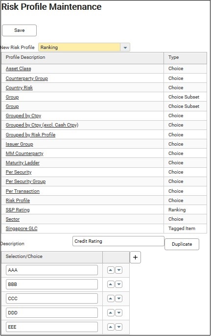Select Credit Rating for Risk Profile*. The system will require additional selection for range of credit ratings.