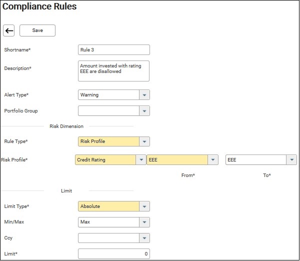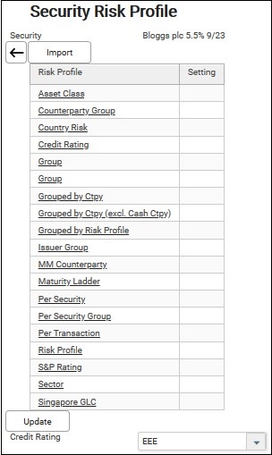 Choose the credit rating from the Credit Rating drop down list. In this example, EEE is selected.