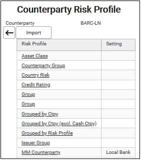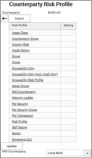 Select MM Counterparty for Risk Profile*. The system will require additional selection for choice of this