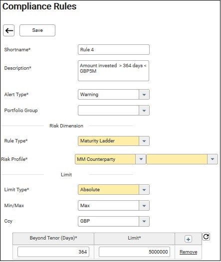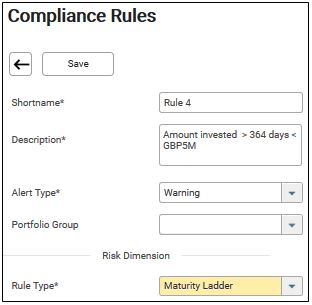 Example: Amount invested for longer than 364 days must be less than GBP5M.