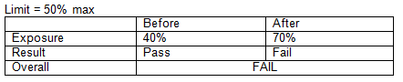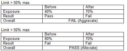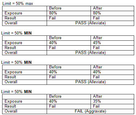 ii) If i) fails, then it tests whether the post trade aggravates or alleviate the exposure. If it aggravates, the fail status remains. But if it alleviates the exposure then the test is deemed to pass.