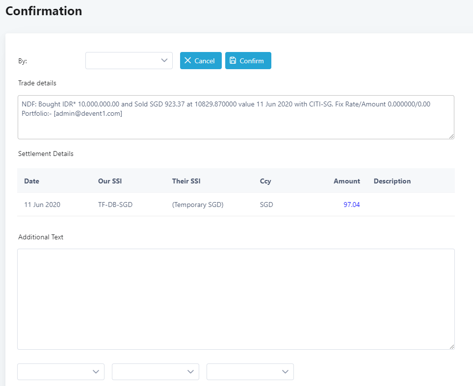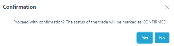 Please note that with the multiple confirm trades feature, the system will only verify if you have the access rights. If granted, the system will mark the trades as confirmed. There are no additional checks or process logic implemented for confirming multiple trades.
