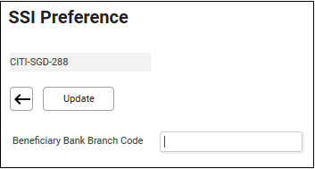 Click on the Beneficiary Bank Branch Code hyperlink to enter value. Click Update. |