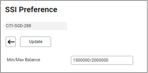 Min/Max Balance | This defines the minimum and maximum balance a user wishes to set for the SSI, with the currency matching the SSI Currency. It is used in the Dashboard – Cash Visibility 1426.