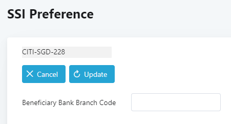 Click on the Beneficiary Bank Branch Code hyperlink to enter value. Click Update. |