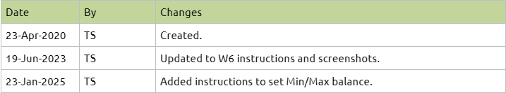 If not set, the dashboard will assume that min/max tracking is not enabled. To set the values, click on Min/Max Balance and enter the minimum and maximum balance in the following format: Click Update. |