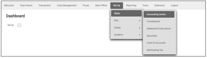 7. Back to the Accounting Centre Group main screen, click on the tick box on the left of newly added accounting centre group.