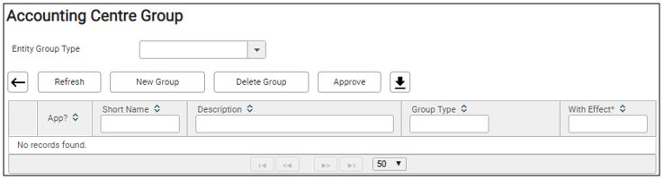 2. In the Accounting Centre screen click Group The screen below will be displayed.