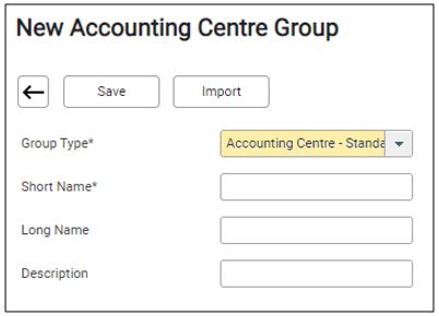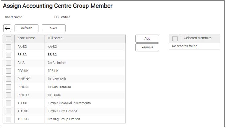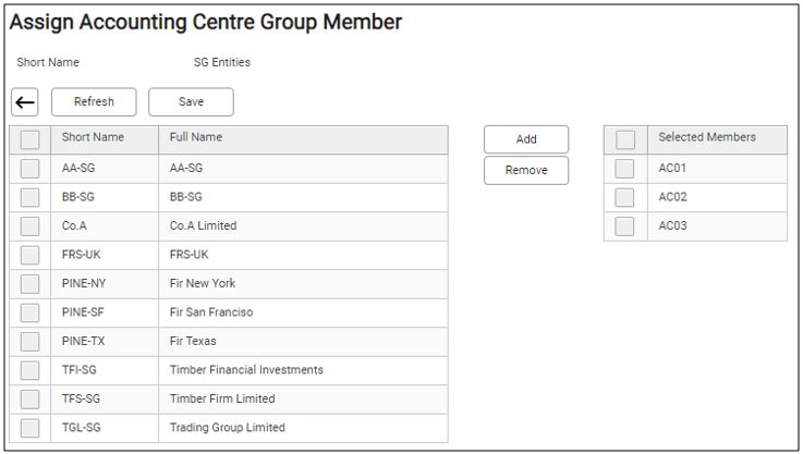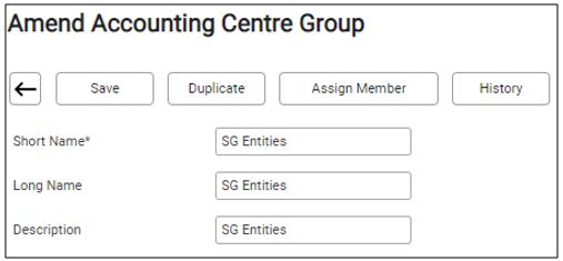 9. To assign members to the accounting centre group, click on the short name of the group to amend. The screen below will be displayed.