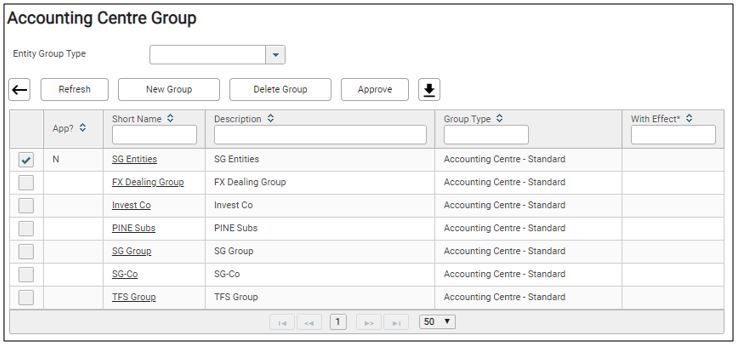 14. From the main Accounting Centre Group screen, click on the tick box next to the accounting centre group which was amended.