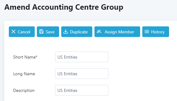 6. In this example, we will create an accounting centre group called US Entities. Click Save.