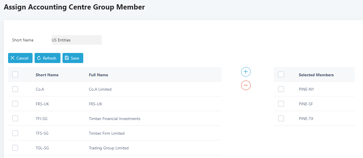 9. To assign members to the accounting centre group, click on the Edit button of the accounting centre group short name. The screen below will be displayed.