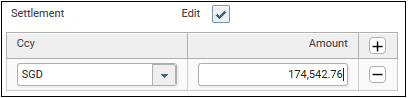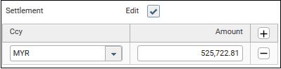 25. Settlement can also be changed on this screen; for example, if the settlement is done in SGD instead of MYR. To edit settlement, click on the Edit check box. The grey area will now be editable.