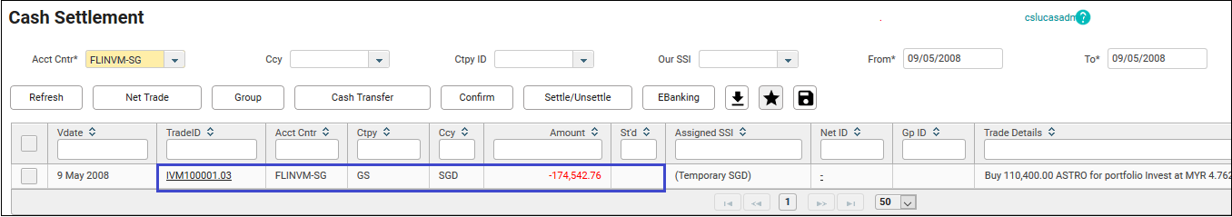 28. The settlement cash flow in the Back Office > Cash Settlement will reflect the change.