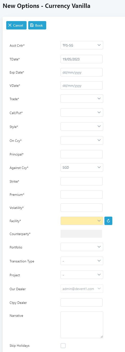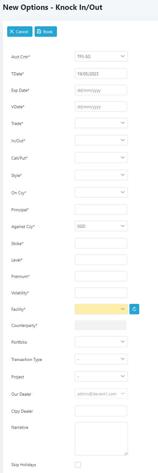 18. Fields such as Portfolio, Transaction Type, Project, Ctpy Dealer and Narrative are not optional. You may input when necessary.