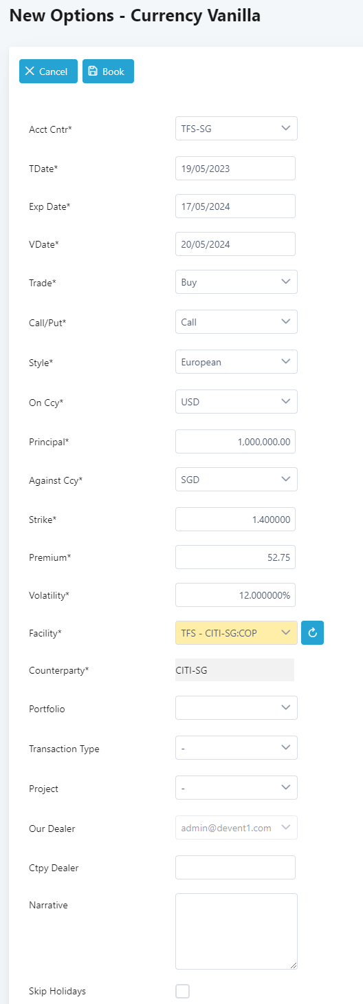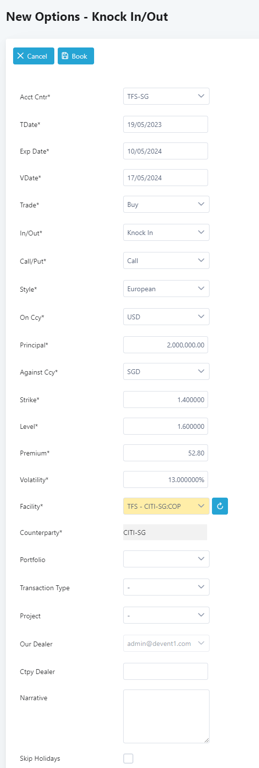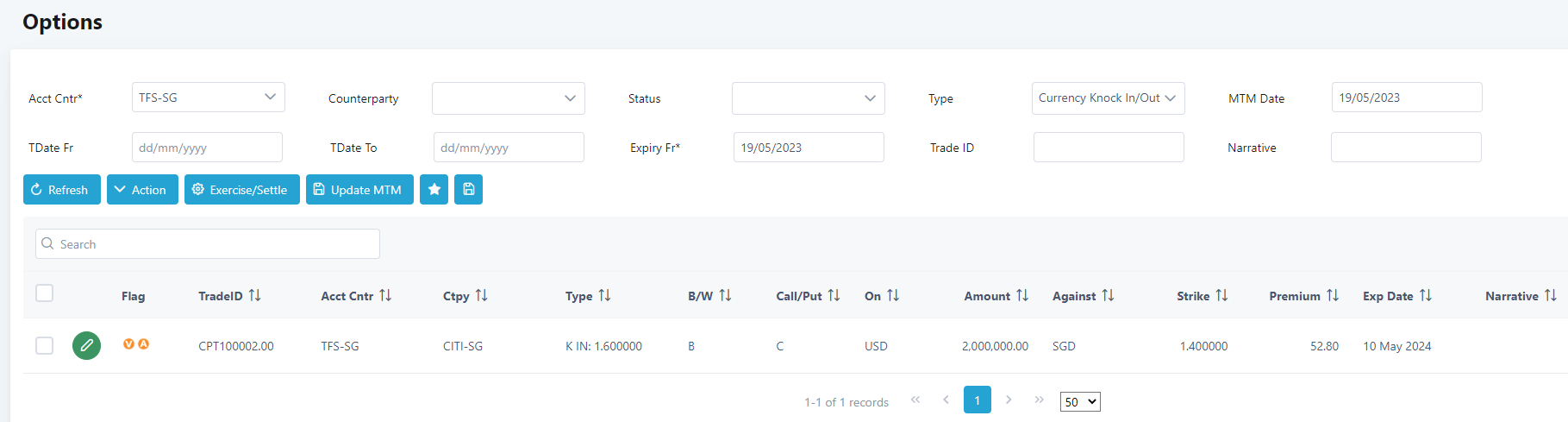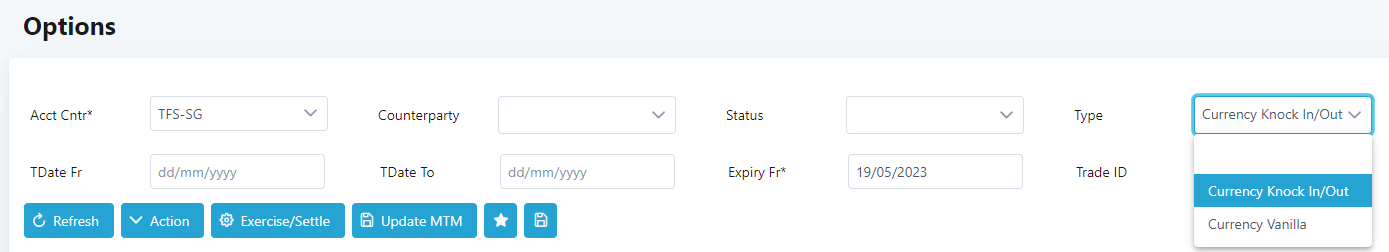 This allows capturing of currency vanilla and knock-in knock-out options transactions in the system.