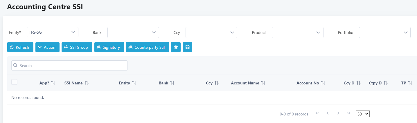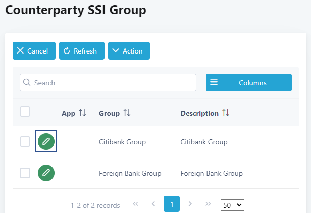 3. Click SSI Group. The Counterparty SSI Group screen displays.