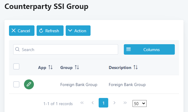 18. You will be returned to Amend Counterparty SSI Group screen. Click the Cancel button to return to Counterparty SSI Group screen.