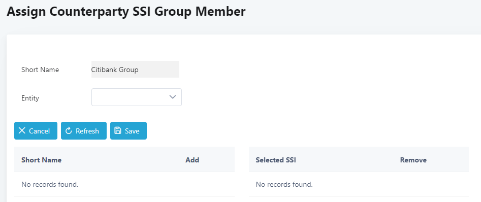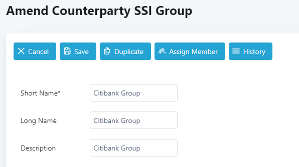 11. In the Amend Counterparty SSI Group screen, click Assign Member.