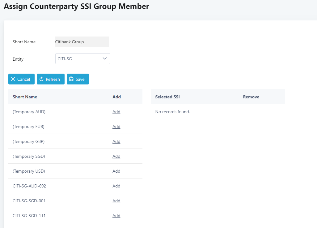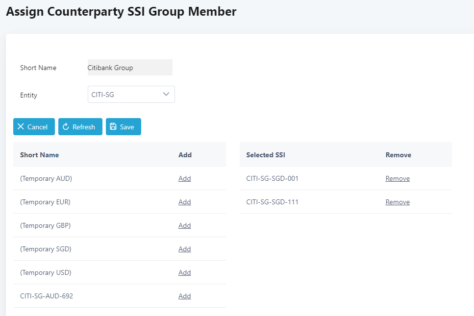 16. The counterparty SSI will be added to the right.