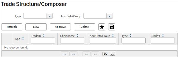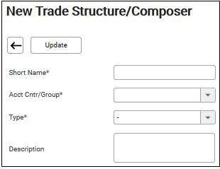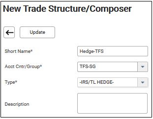 7. Click Update. The Trade Structure/Composer main screen will show the newly created trade structure in the listing. The newly created trade structure will show with an N.