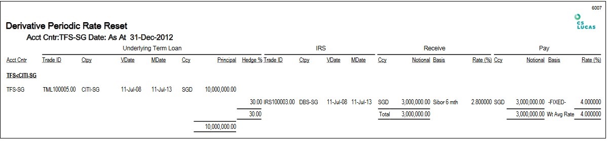 5. Select the Type as “-IRS/TL HEDGE-“ for grouping Interest Rate Swap and Term Loan hedging trades.
