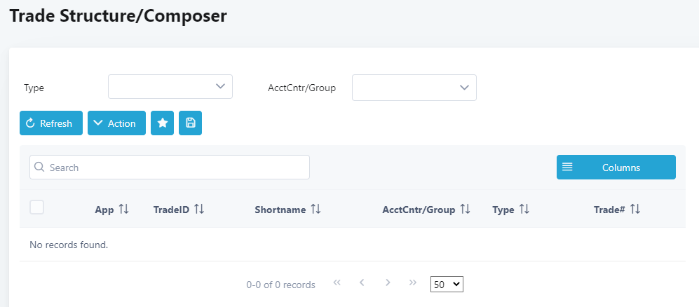 2. To create new trade structure, click on Action and select New. The screen below will be displayed.