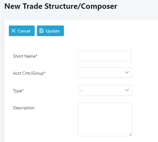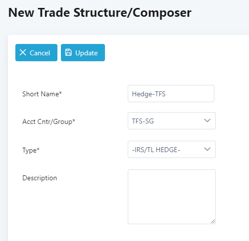 3. Fill out the mandatory fields. Enter a short name for the new trade structure.