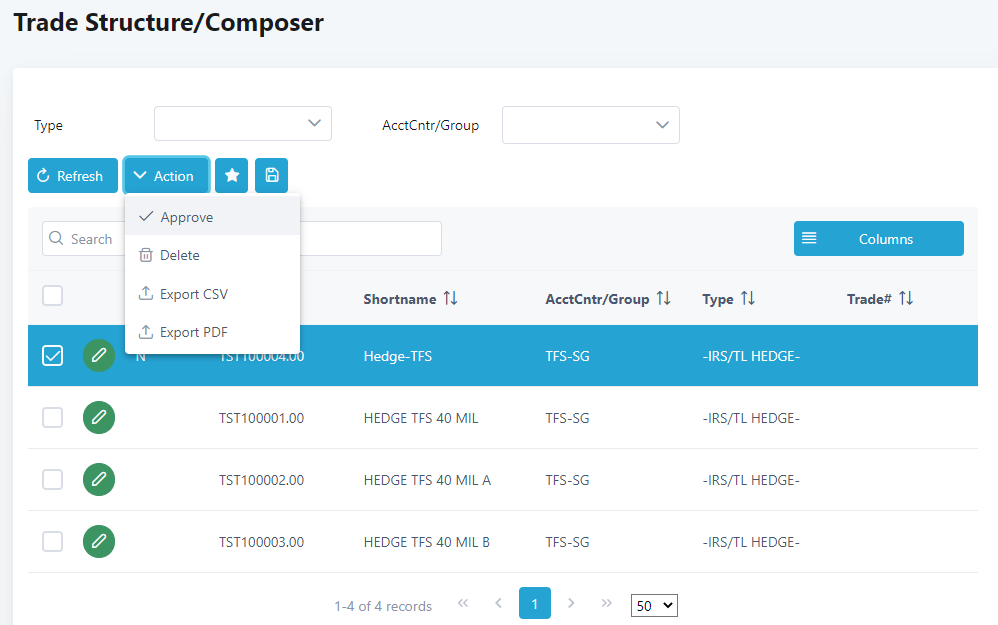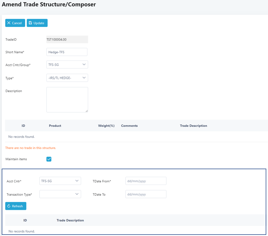 10. Once the trade structure created, click on the Trade ID to drill down to Amend Trade Structure/ Composer screen.