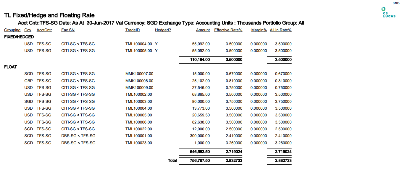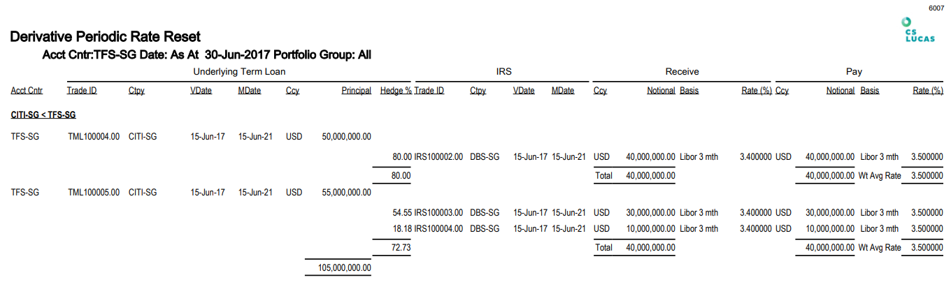 5. Select the Type as “-IRS/TL HEDGE-“ for grouping Interest Rate Swap and Term Loan hedging trades.