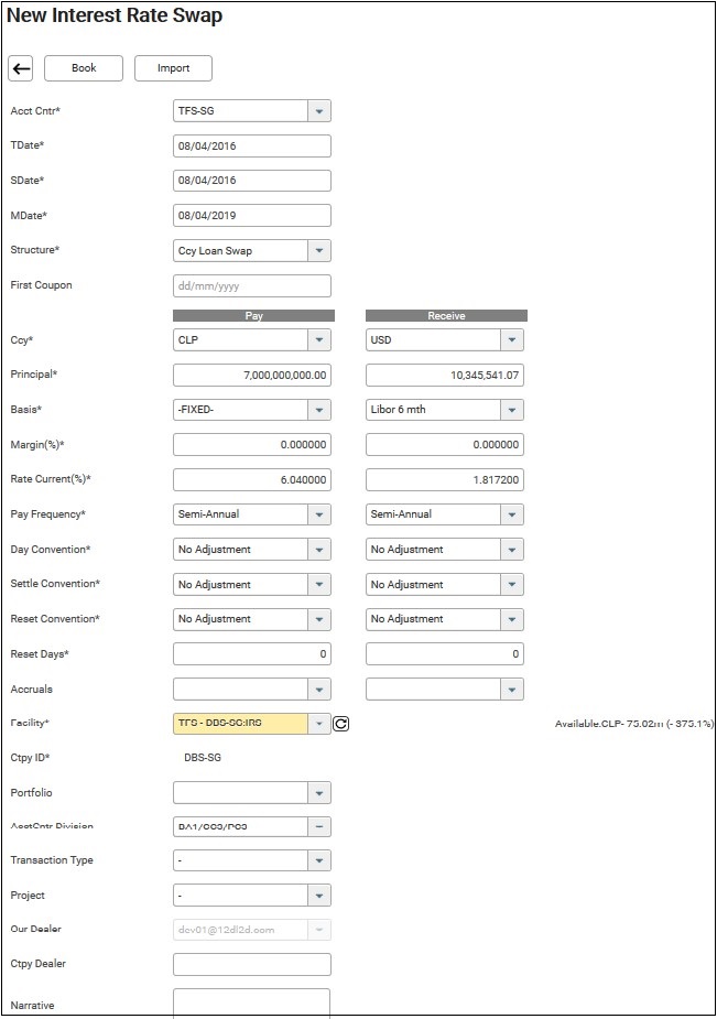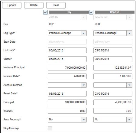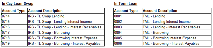 Allows booking of currency loan swap trade in Interest Rate Swap module and journaling of accounting entries from the system. From an accounting stand point, a Ccy Loan Swap will be treated as a borrowing term loan and a lending term loan.