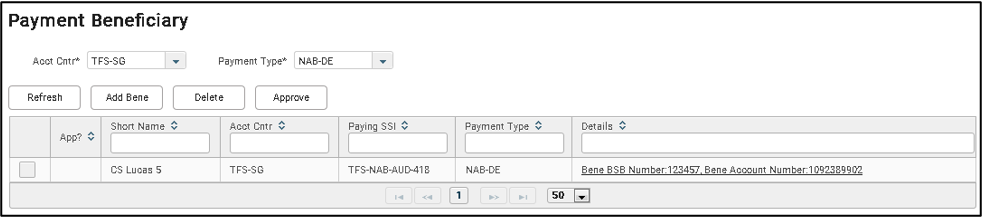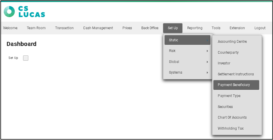 1. From the menu, select Set Up > Static > Payment Beneficiary.