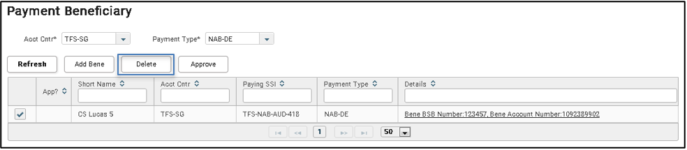 5. Tick on the checkbox of the payment beneficiary short name to delete, click Delete.
