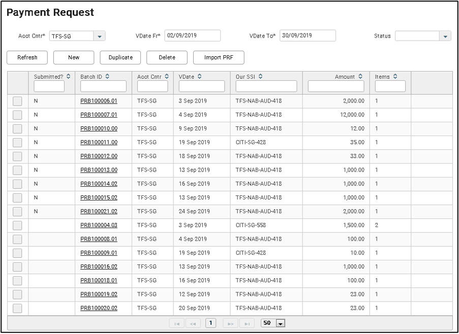 Tip: If you do not see the Payment Request in the menu navigation, please ensure that you have the access rights to access this screen. Access rights required is 19400 Access Payment Request.