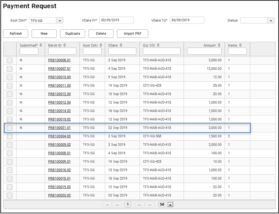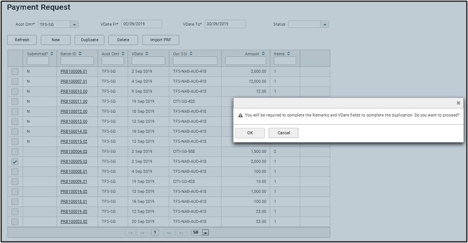 4. To duplicate payment request, tick on the checkbox of the payment request batch and click Duplicate.