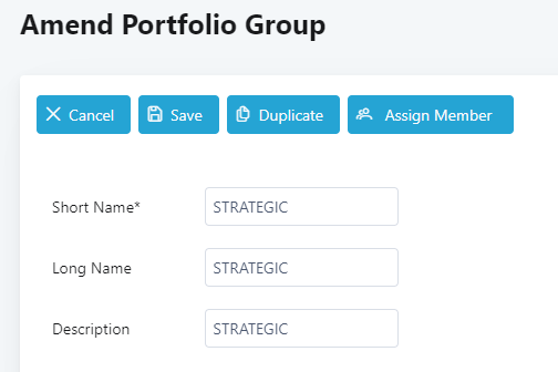 This allows a quick set up of portfolio group when you need to create a portfolio group that is similar to the existing portfolio groups that you have in the list. By duplicating the portfolio group, the members assigned to the existing portfolio group will also be duplicated.