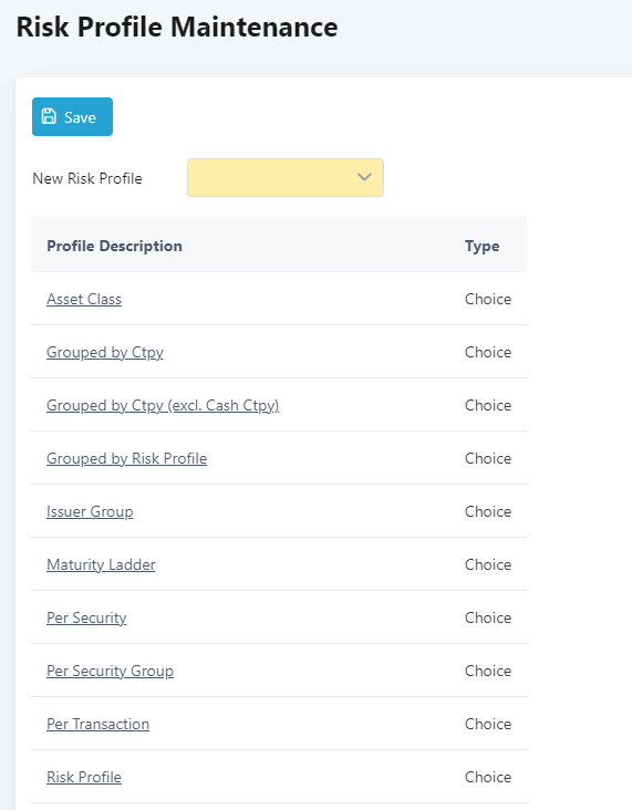 1. From the main menu, click Set Up > Risk > Risk Profile.