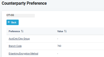 1. Set up a branch code for the bank counterparty. For example, the branch code for Citibank in Singapore is a 3 character numeric value. We use 760.