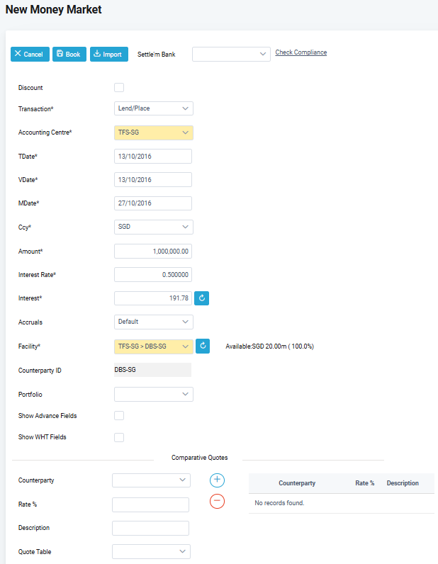 Once the trade is booked, assign the settlement instructions for this trade using the bank account/ SSI that has been set up for e-banking. For more details on how to assign settlement instructions, please see Cash Settlement.