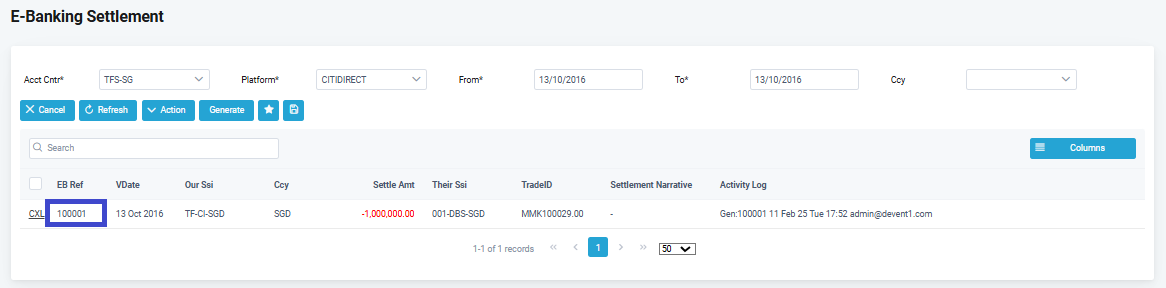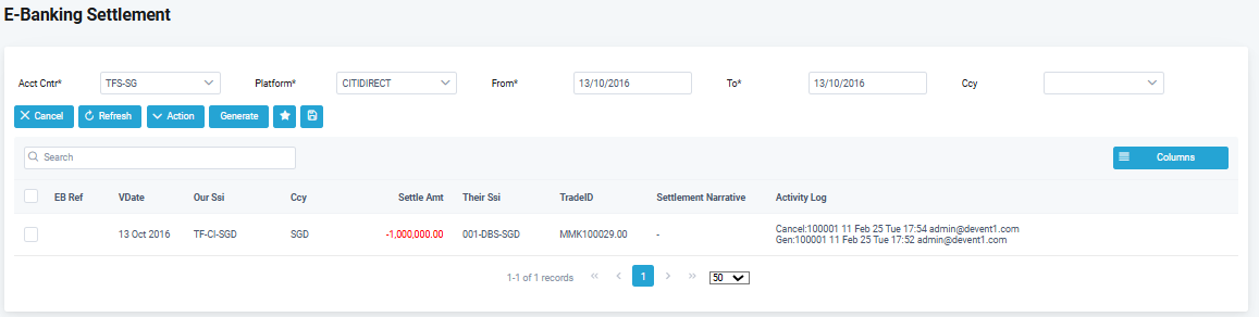 The electronic banking feature creates an electronic file that can be read by the bank’s e-banking system. This eliminates the manual process by having to send settlement instructions letter to the banks.