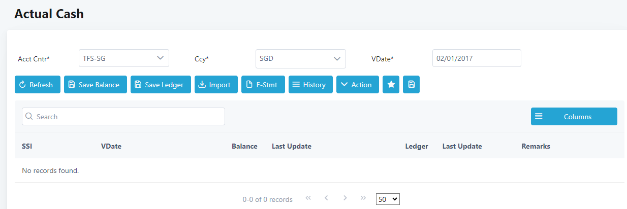 1. Select Cash Management > Actual > Cash Balance. Click on E-Stmt button.