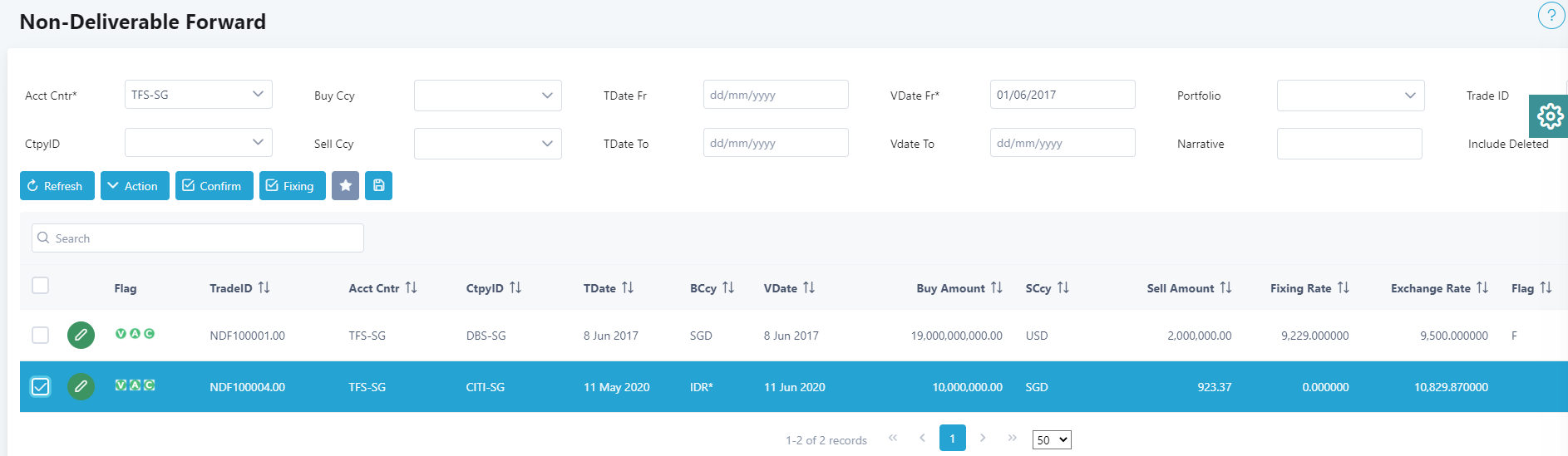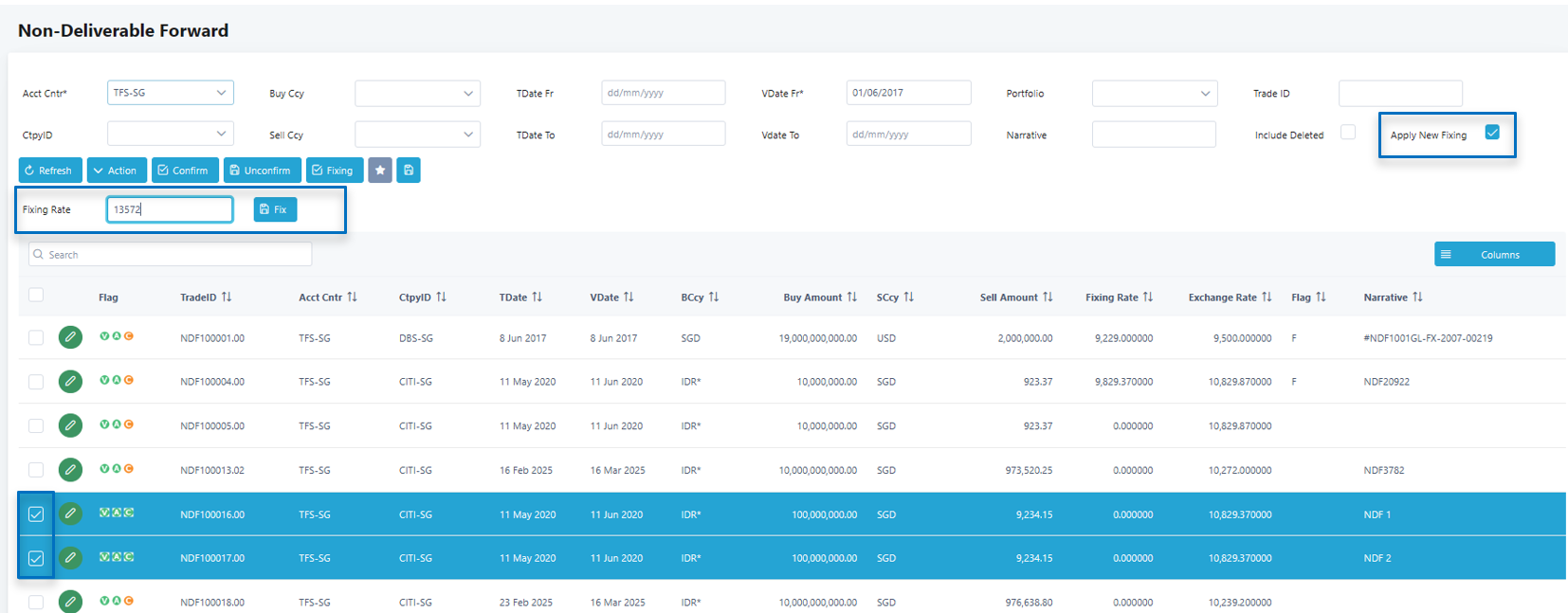 1. From the launch screen of Non-Deliverable Forward, click on the check box next to the trade to be fixed.