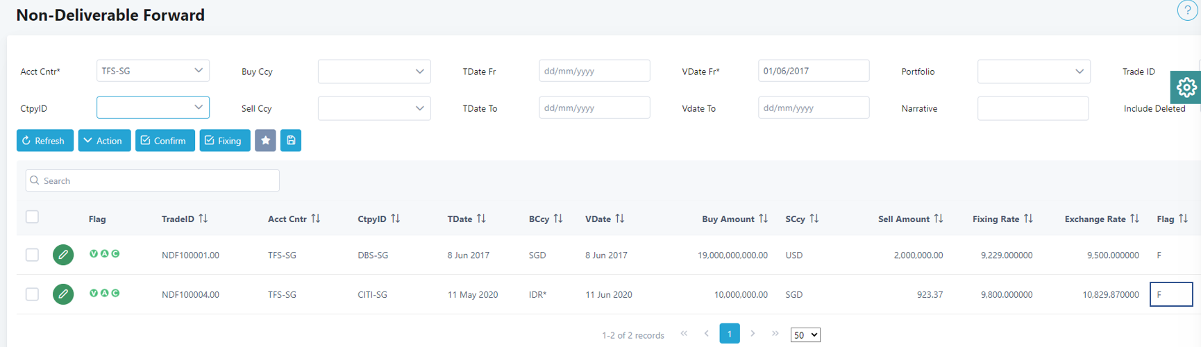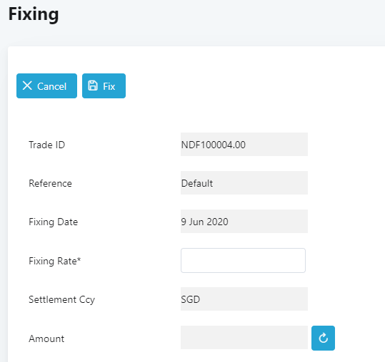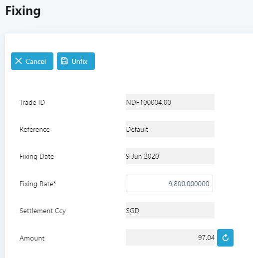 4. Click Refresh Button. The system recomputes the difference between the fixing rate and the contracted NDF rate on the agreed principal amount.