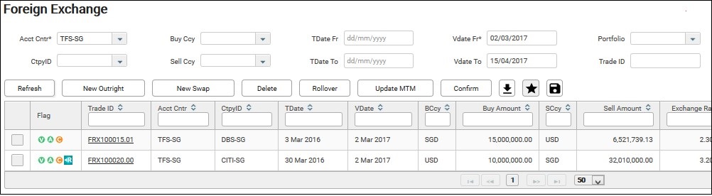 2. Click Refresh. All the FX transactions related to the search parameters entered will be displayed.