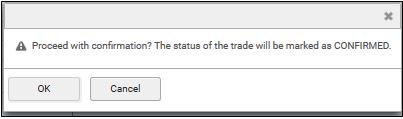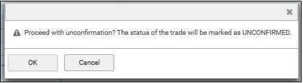 2. The system will verify whether you have the necessary access rights. If granted, the system will mark the selected trades as unconfirmed. No additional checks or process logic are implemented when unconfirming multiple trades.
