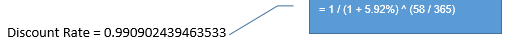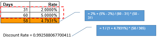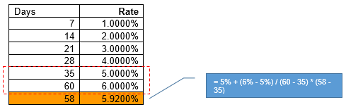 Forward Points = 58 (Mid-Rate / Tenor * Days Forward)