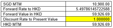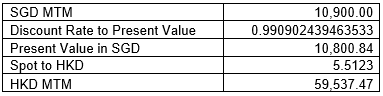 This document shows an example of Foreign Exchange contract’s MTM computation and the reporting currency is HKD.