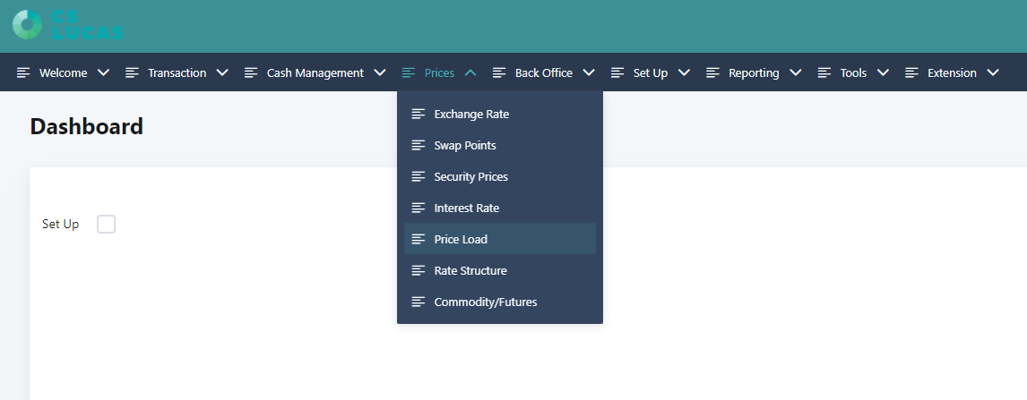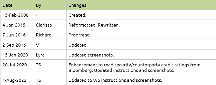 Using the Bloomberg price load makes it easier for the currency/ security prices and counterparty/ security credit ratings information to be retrieved from Bloomberg in one template for the selected VDate and loaded into CS Lucas system.