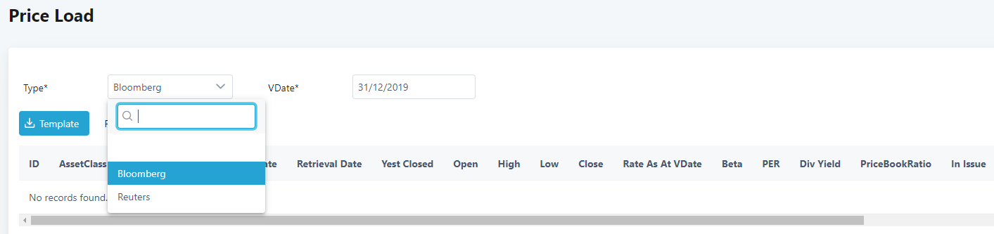 4. Input the preferred date in the VDate field and click on Template. System will get the prices for this date.