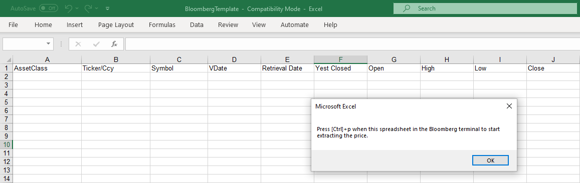 6. File download prompt will appear to save the file. Save the template on the Bloomberg terminal.